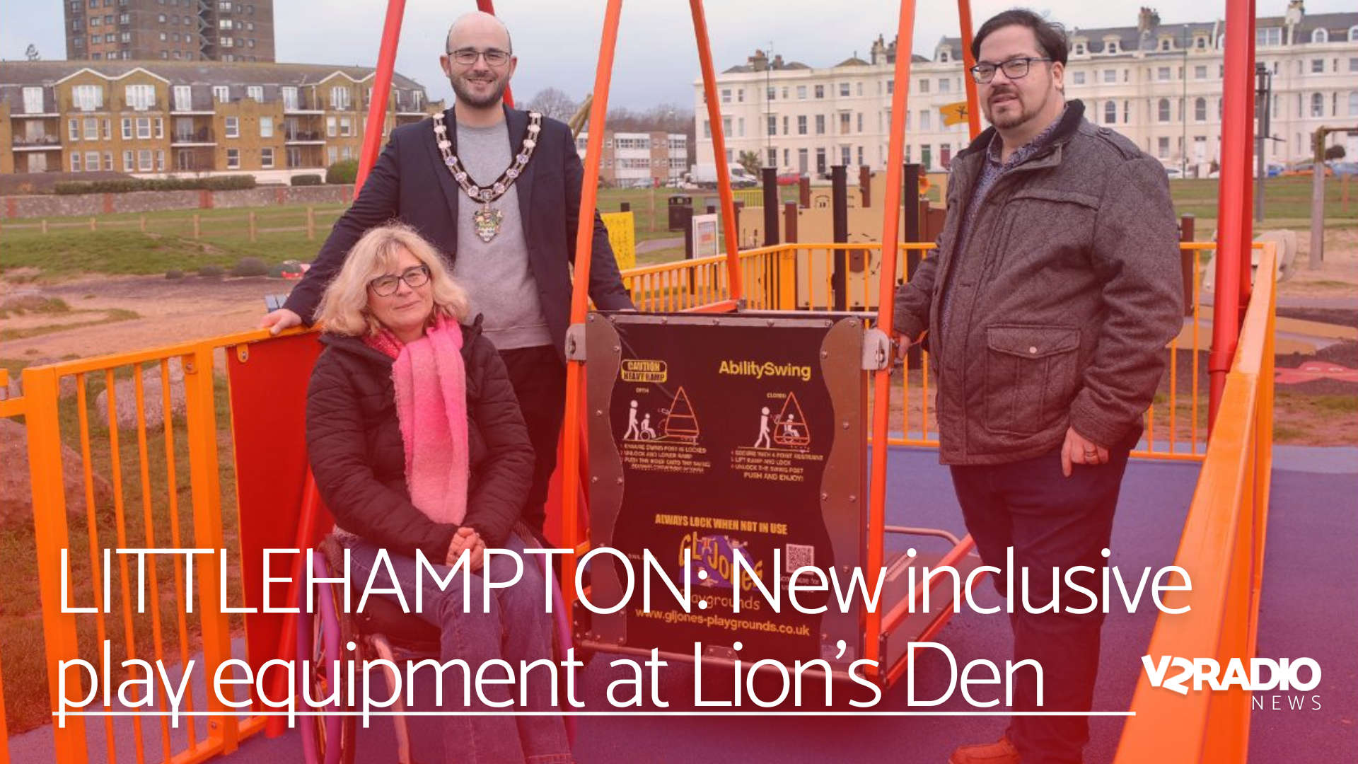 A new wheelchair-accessible swing has been installed at the Lion’s Den play area in Littlehampton, offering more inclusive play opportunities for children and families.